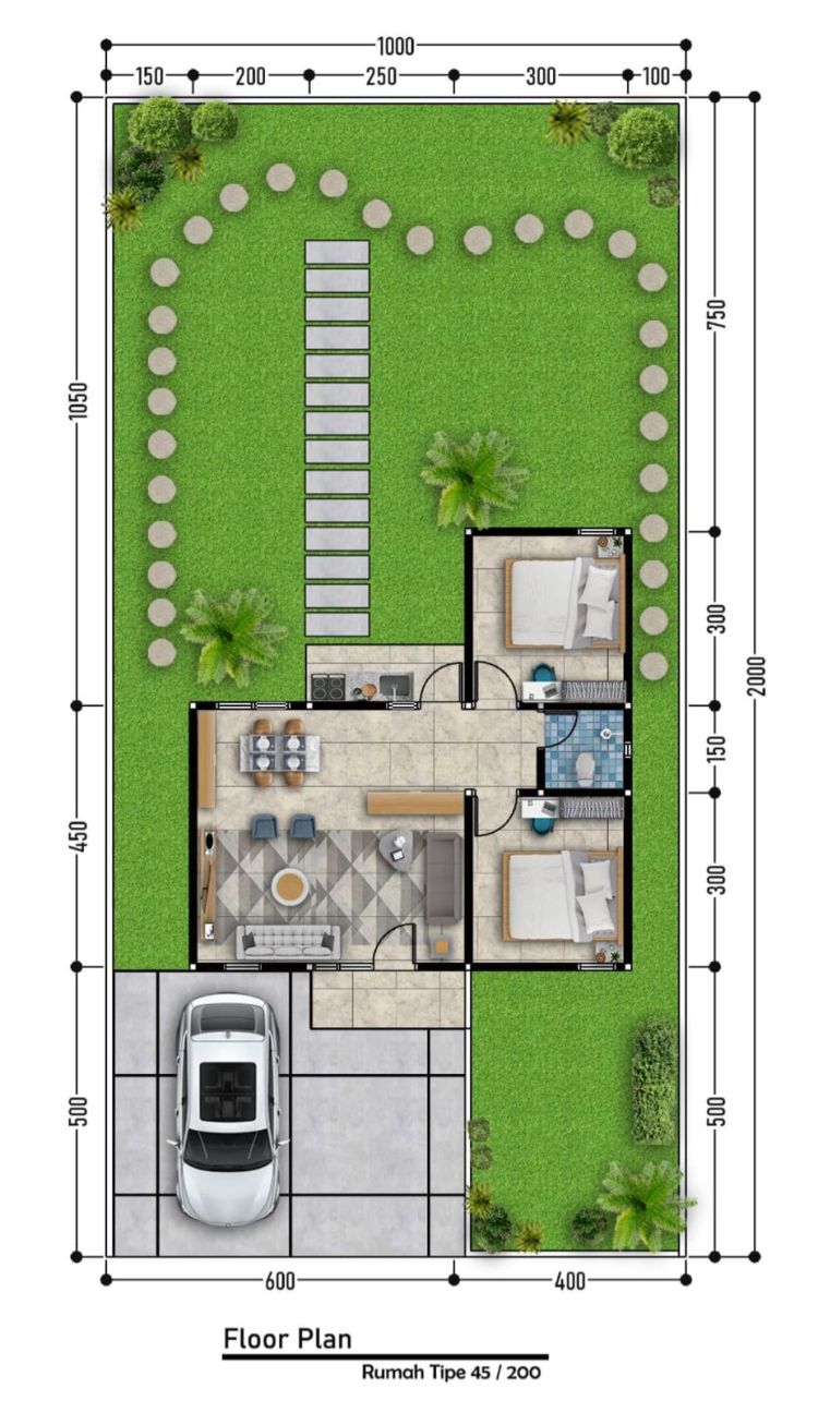 Luas tanah 200 m2 – Luas bangunan 45m2