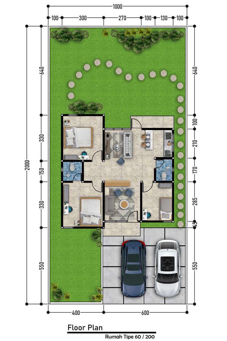 Luas tanah 200 m2 – Luas bangunan 60m2
